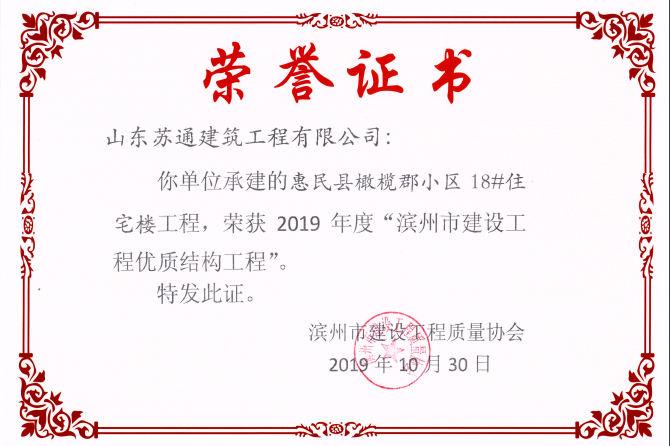 山東蘇通建筑工程有限公司,創建于2009年8月。目前擁有房屋建筑工程施工總承包壹級、市政公用工程施工總承包叁級、水利水電工程施工總承包叁級資質,同時還具有建筑裝修裝飾工程專業承包貳級、消防設施工程專業承包貳級、鋼結構工程專業承包叁級、建筑機電安裝工程專業承包叁級等專業承包資質。 公司總部坐落于山東省濱州市濱城區黃河十二路877號,現有辦公面積約2000平方米,機構設黨支部工會辦公室、總經理辦公室、綜合辦公室、工程管理部、經營預算部、資產財務部、材料設備部、運行管理部、法律事務部等多個職能部門。公司管理體系已經通過了GB/T 19001及GB/T 50430質量管理體系、GB/T 24001環(huán)境管理體系(EMS)、GB/T 28001職業健康安全管理體系(OHSMS)等體系的認證。 公司承建完工了濱州市建大教師之家、建大清怡苑、香格里拉水岸綠城住宅小區、雙泰建大城、曲阜崇德公館住宅小區、北海新區御景藍灣住宅小區、沾化德榮國際華城住宅小區、惠民橄欖郡住宅小區等工程項目,目前在建工程項目有:濱州市頤高國際電子商務產業園住宅小區項目、濱州市東盛國際項目、高新區建大中央華府住宅小區項目、濱州市融匯新里程住宅小區項目、濱州市建大秦皇壹號住宅小區項目、濱州市森林花...